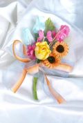 小花達のミックスカラーコサージュ(グラデーションリボン)